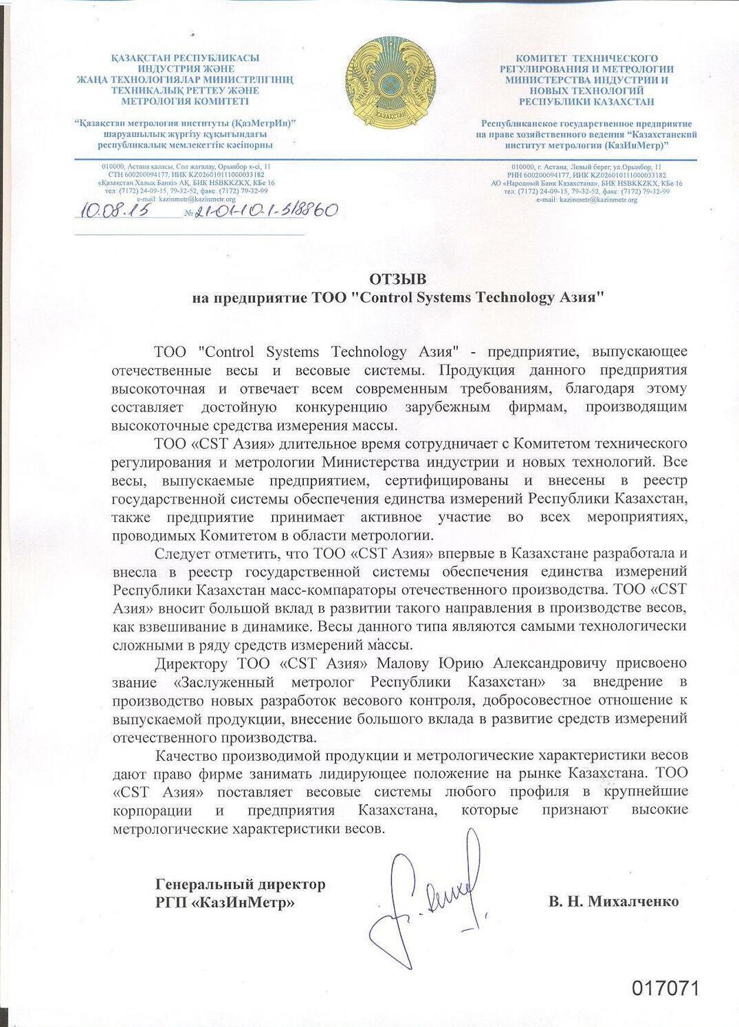 * ТОО «CST Азия» впервые в Казахстане разработала и внесла в реестр государственной системы обеспечения единства измерений РК масс-компараторы отечественного производства.
