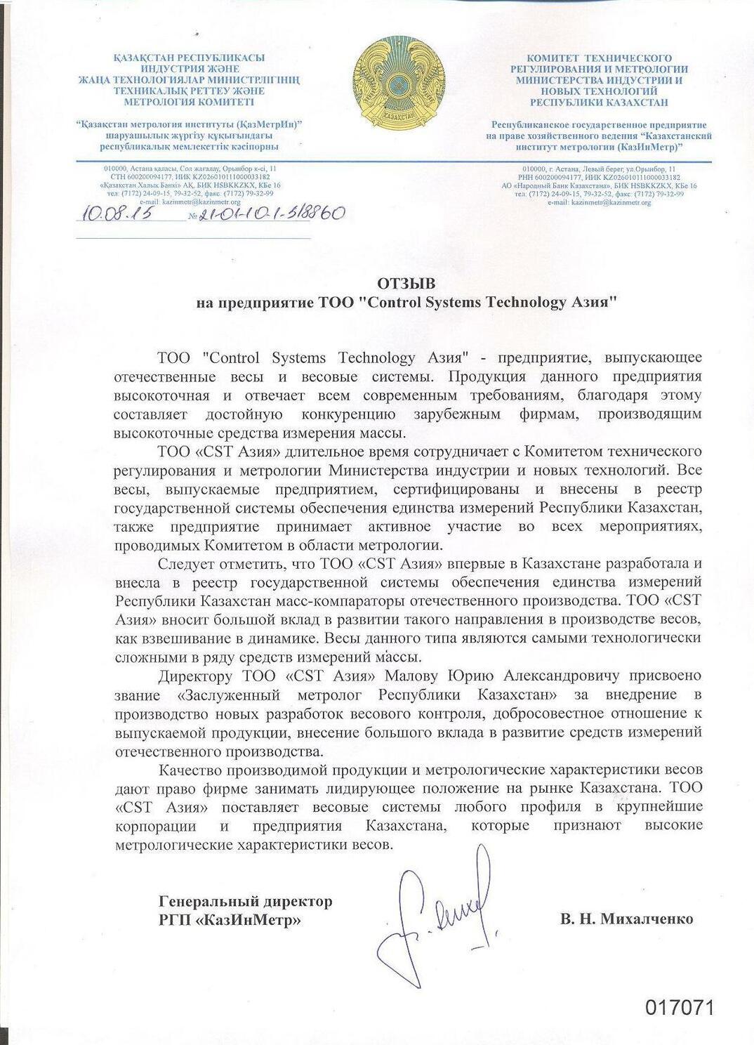 * ТОО «CST Азия» впервые в Казахстане разработала и внесла в реестр государственной системы обеспечения единства измерений РК масс-компараторы отечественного производства.